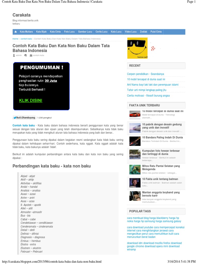 Contoh Kata Baku Dan Kata Non Baku Dalam Tata Bahasa Indonesia
